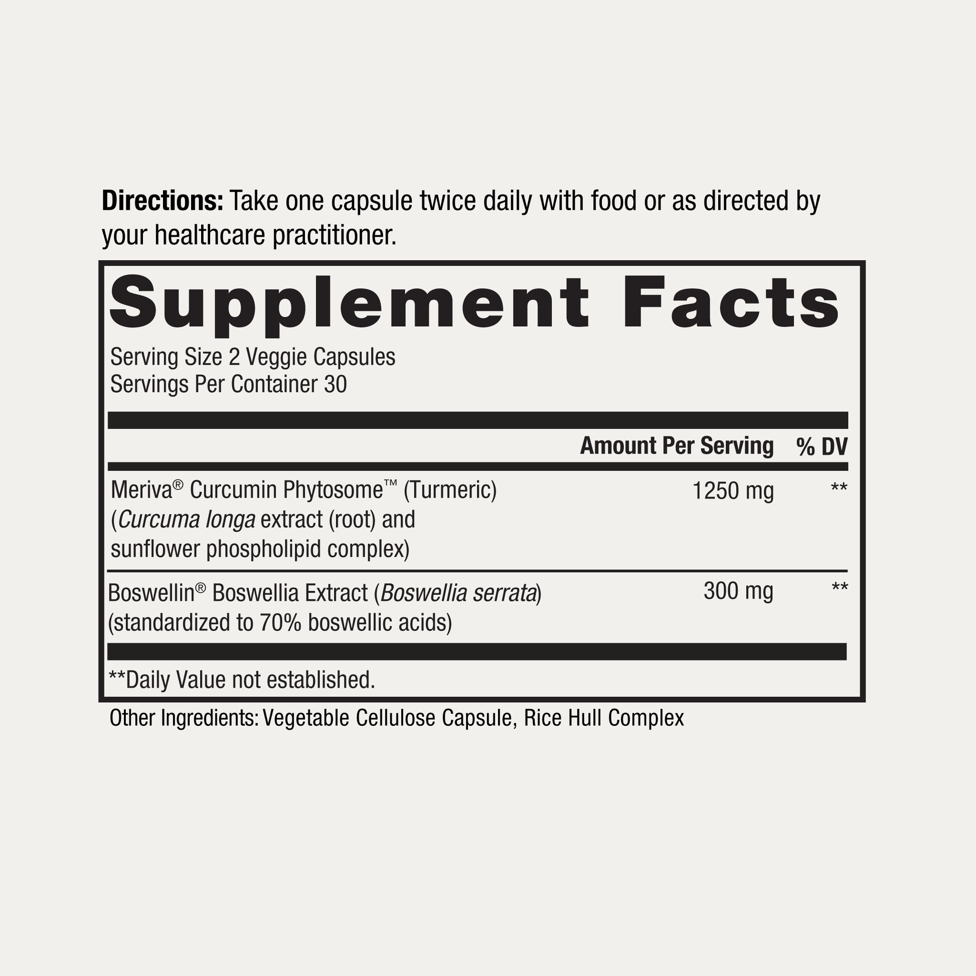 Unlock turmeric’s full inflammation-fighting power with an extra-strength 1,250 mg dose of Meriva® Curcumin Phytosome™, which offers 29x better bioavailability and 2x faster absorption. Plus get 300 mg of Boswellin® Boswellia, which synergistically enhances turmeric’s body-wide benefits.*